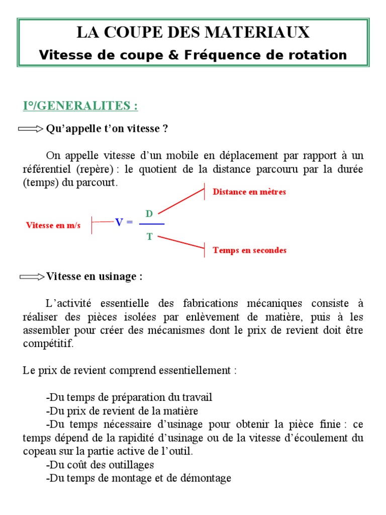 Vous allez trouver péniblement un moteur monophasé de cette puissance en 1500trs et il va vous falloir un. Options après ouverture du répertoire. Module 3 calcul de la vitesse de rotation et d'avance selon le matériau à usiner et le type d'outil. Le titre de l'article est déjà balèze. Elle est tout d'abord exprimée en nombre de tour par seconde, puis convertie en nombre de tour par minute.