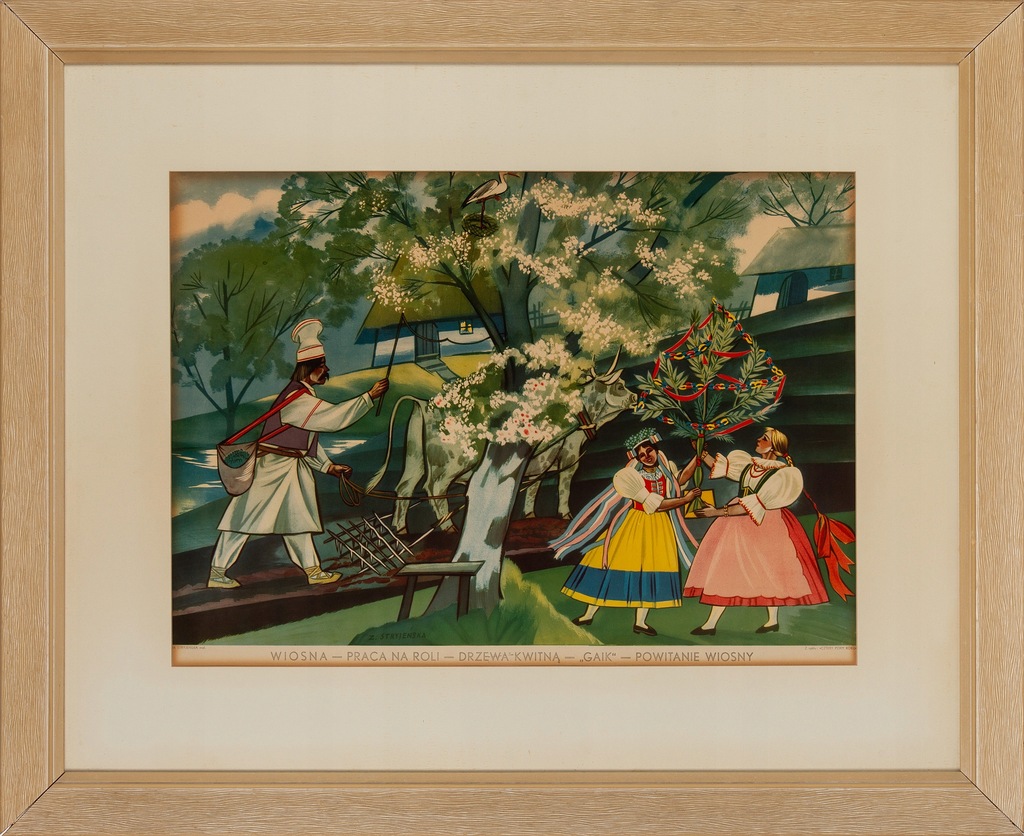 Rysunek I Grafika Zofia Stryjenska from www.ostoya.pl 69,93 zł (zawiera rabat 30 %). Scena rodzajowa przy potoku, po 1930. Jej obrazy były afirmacją życia i natury, pełne optymizmu, witalności, barwności. Temat „zofia stryjeńska jest dziewiąty w tej serii. Zofia stryjeńska żywo interesowała się folklorem i historią. Zofia stryjeńska z domu lubańska (ur. Wyobrażone sceny cechował znamienny dla sztuki stryjeńskiej nastrój radosnego święta osadzonego w polskiej tradycji i afirmacja życia wtopionego w rytmy natury. Gwasz/papier naklejony na tekturę, 94,5 x 67,5 cm.